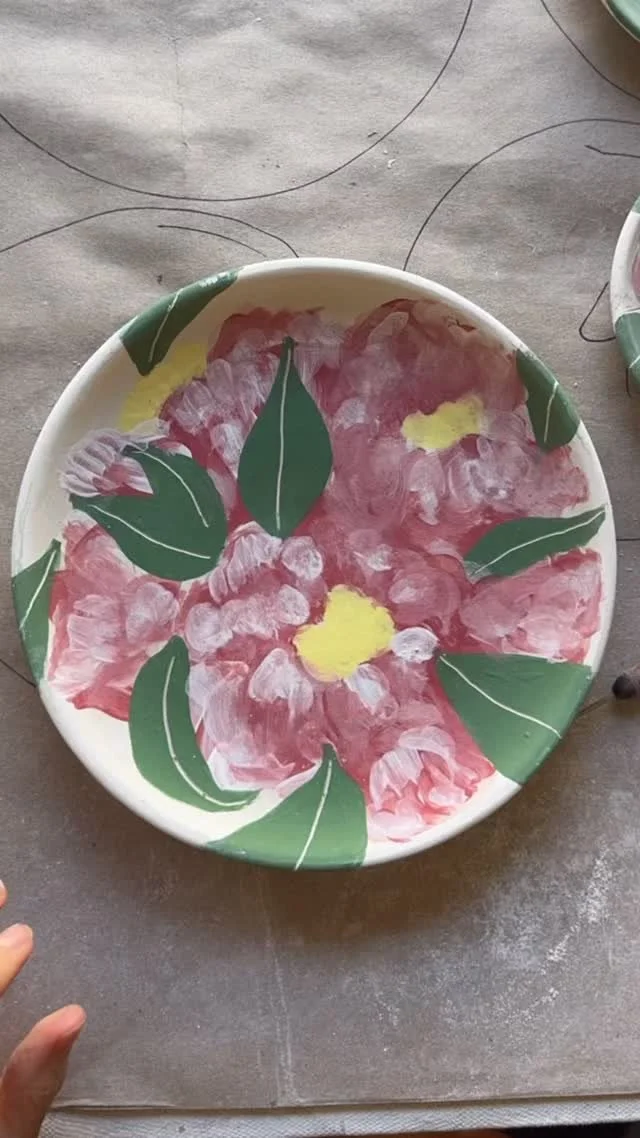 Handmade porcelain ceramics painted and carved with designs inspired by summer blooms in the South.